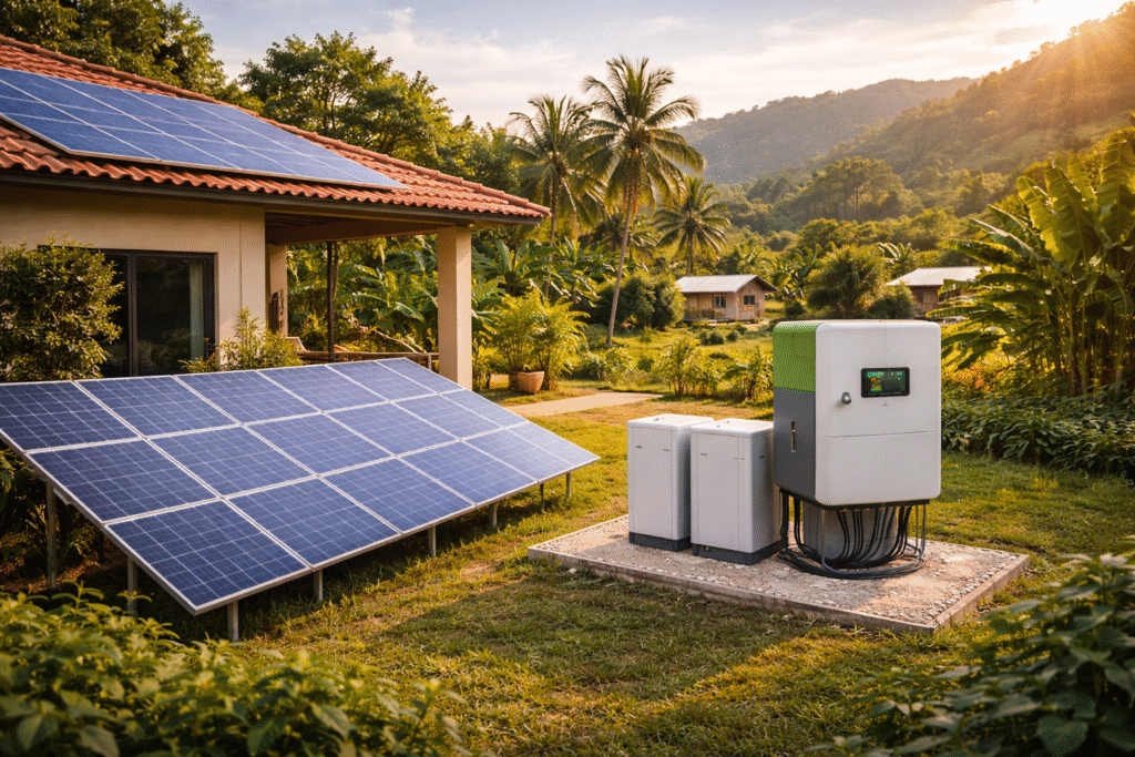 Em áreas com rede elétrica instável ou inexistente, o armazenamento deixa de ser opcional e se torna estratégico para a continuidade operacional.