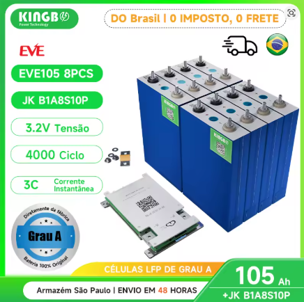 CÉLULAS LIFEPO4 EVE 105AH / 8 UNID. COM BMS