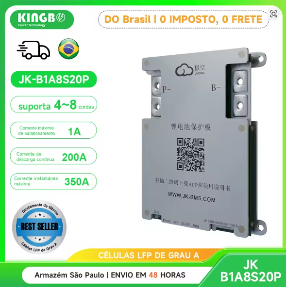 Kingbo Power Smart JK BMS B1A8S20P 1A 4S 8S 12V 24V com balanceador Ativo 200A Sistema de monitoramento da bateria.