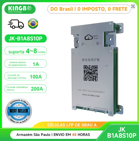 Kingbo Power Smart JK BMS B1A8S20P 1A 4S 8S 12V 24V com balanceador Ativo 200A Sistema de monitoramento da bateria.