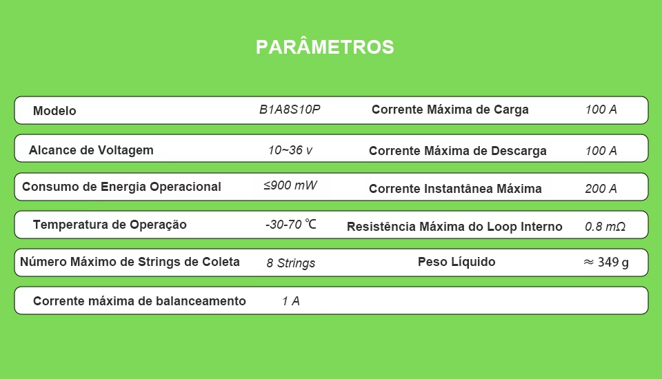 • Longa vida útil: Até 10 vezes mais ciclos que baterias convencionais.