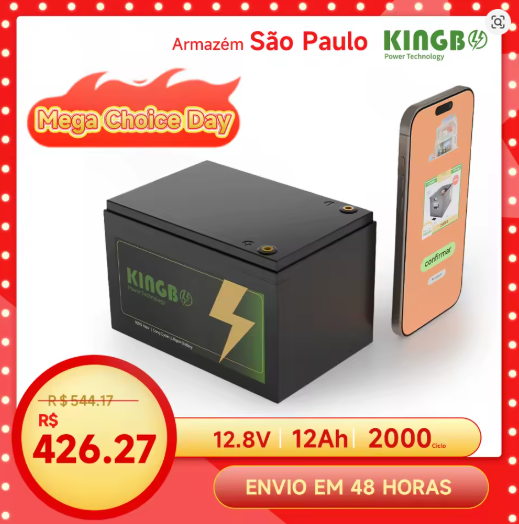 Marca: Kingbo Power Bateria de fosfato de ferro-lítio Kingbo Power 12V 12Ah para armazenamento de energia, adequada para iluminação de emergência.