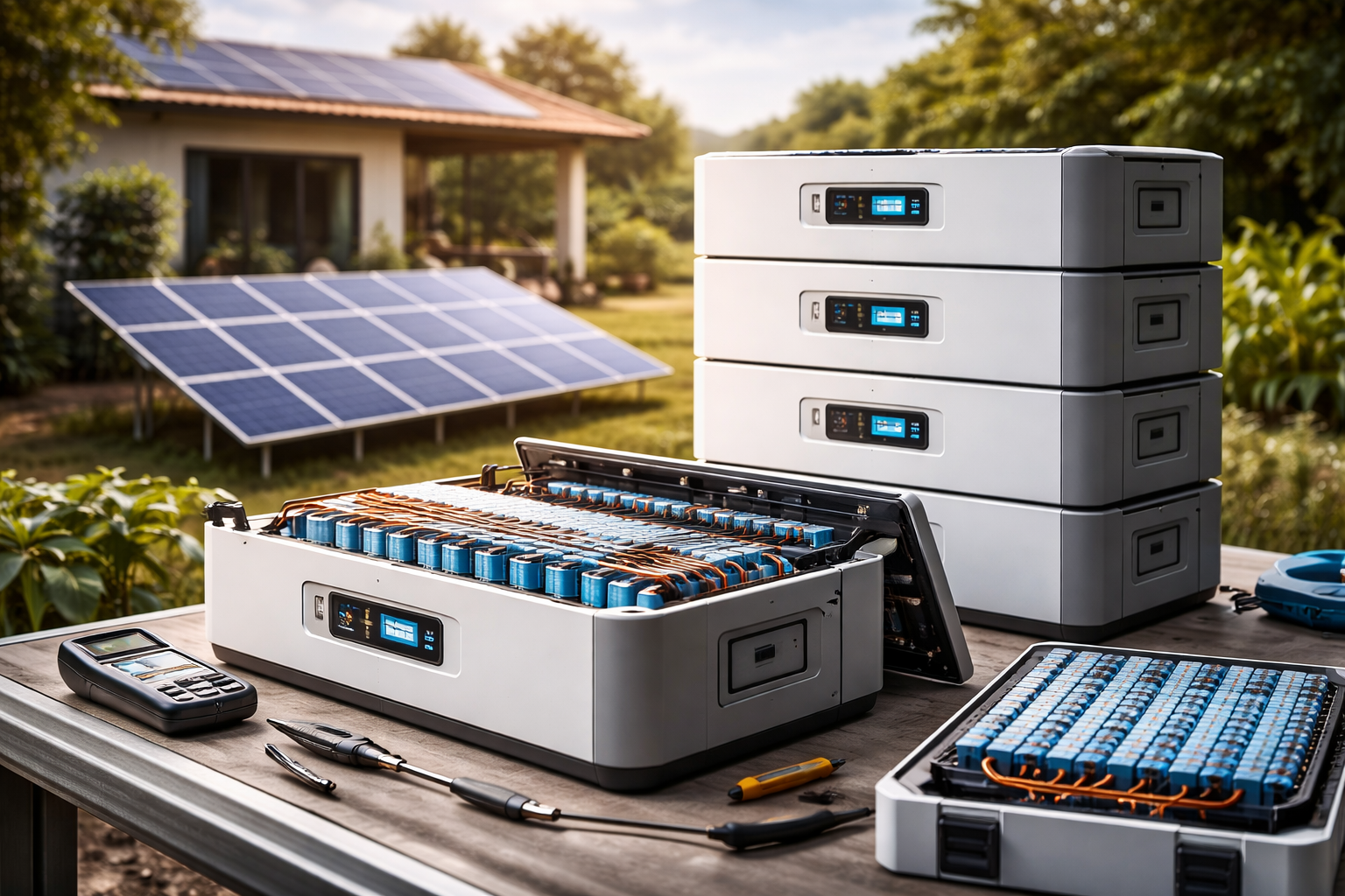 As baterias LFP (LiFePO4) utilizam fosfato de ferro como material do cátodo. Embora façam parte da família das baterias de íon-lítio, apresentam características específicas que as tornaram padrão no setor solar.