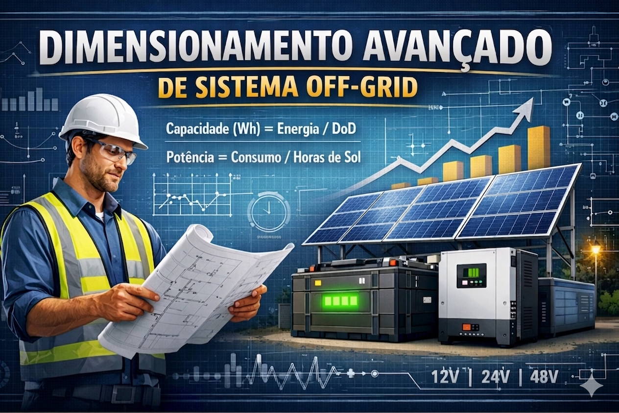 O dimensionamento de sistema solar off-grid é uma das etapas mais críticas de todo o projeto fotovoltaico. Um erro nessa fase pode comprometer completamente o desempenho do sistema, gerando falta de energia, desperdício de investimento ou até falhas operacionais graves. Por isso, dominar esse processo é indispensável para engenheiros, técnicos e integradores solares.