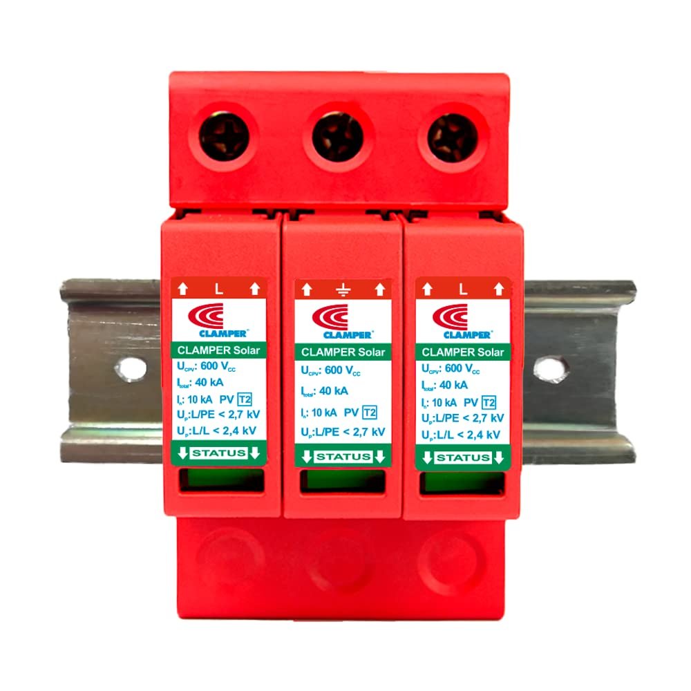 Existem modelos de DPS para polos positivo e negativo, com tensões nominais compatíveis com o sistema (geralmente 600V, 1000V ou 1500V DC).