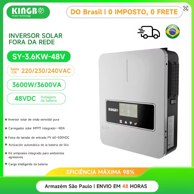 Kingbo Power 3.6KW Hybrid Solar Inverter 48V DC to 220V AC with MPPT 120A Solar Charger Controller Pure Sine Wave Inversor